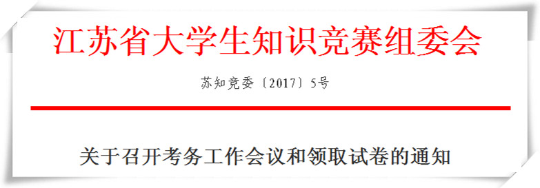 江苏省大学生知识竞赛组委会发布苏知竟委〔2017〕5号文,关于召开“江苏省第四届文科大学生自然科学知识竞赛”的考务会议。