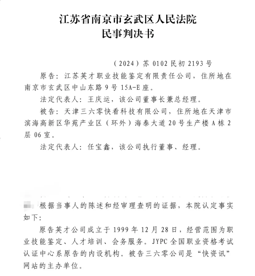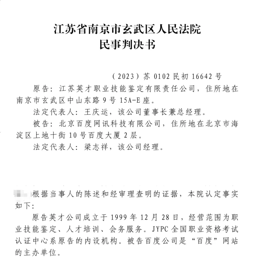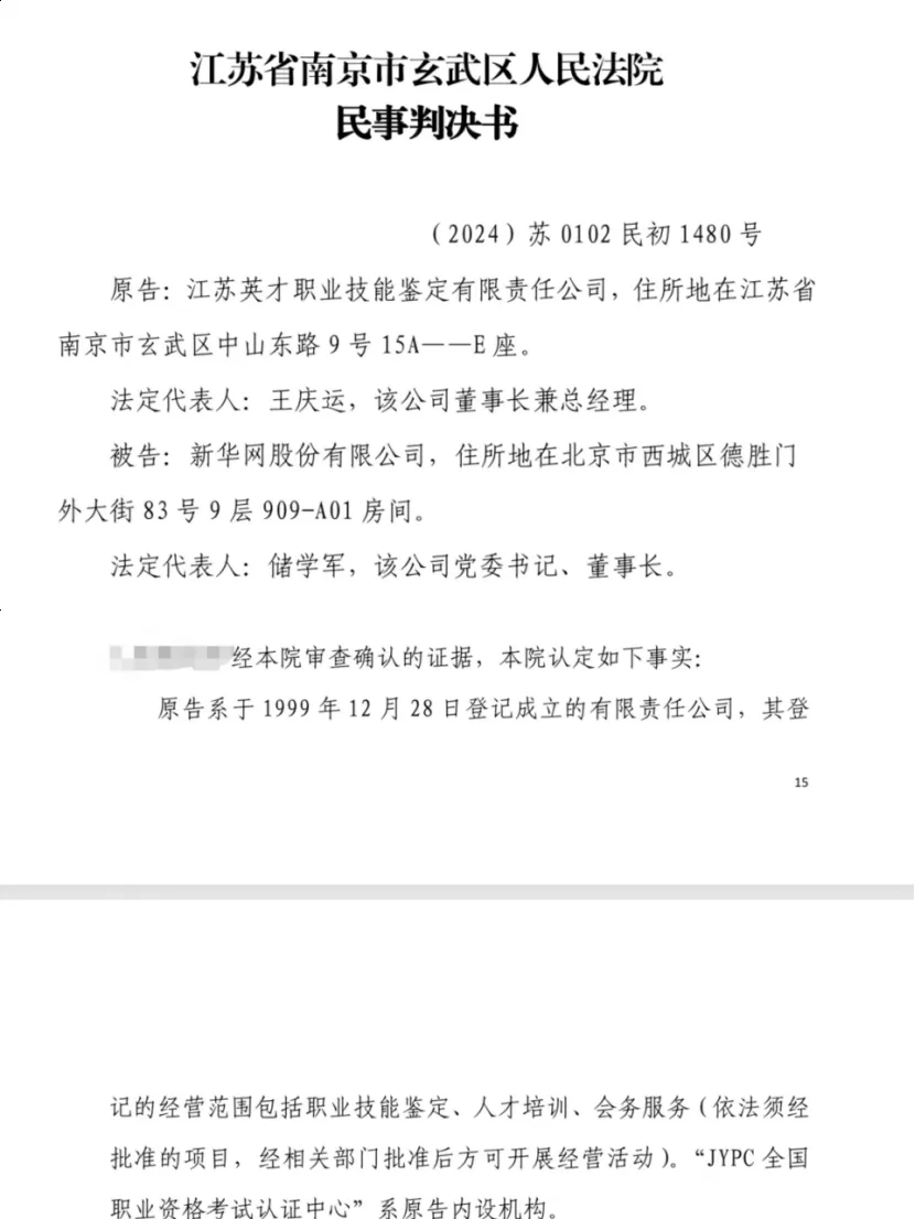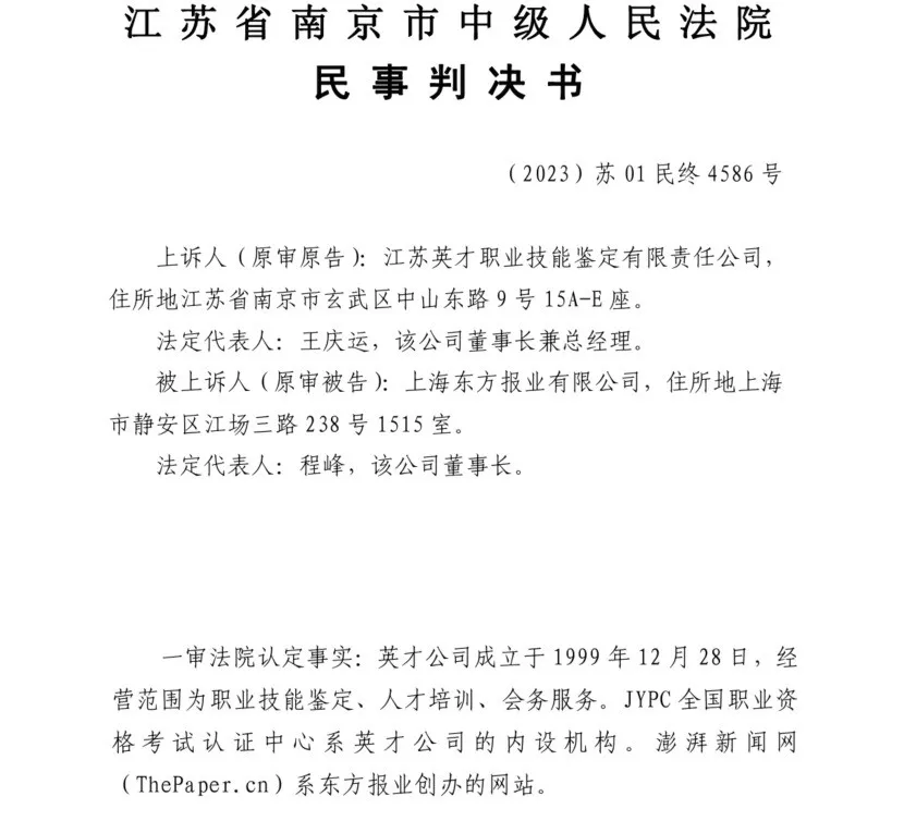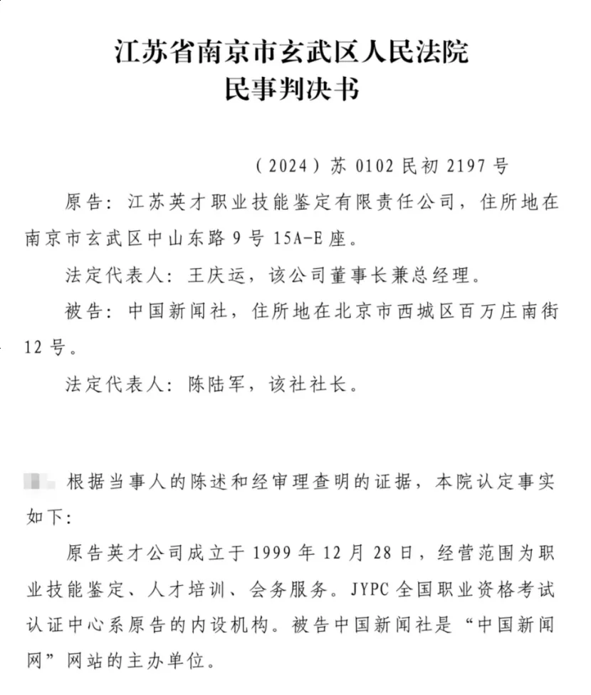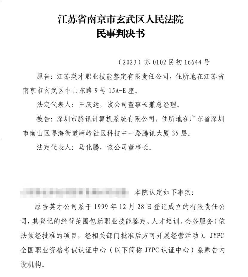 JYPC全国职业资格考试认证中心是否合法?南京市两级人民法院,最近用12份民事判决书,给出了明确答案:“江苏英才职业技能鉴定有限责任公司成立于1999年12月28日,经营范围为职业技能鉴定、人才培训。JYPC全国职业资格考试认证中心,系江苏英才公司的内设机构”。法院用一系列判决,彻底回应了社会各界的关切:JYPC全国职业资格考试认证中心是合法机构。